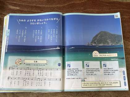 「うみ」の歌を息つぎに注意しながら歌っています。