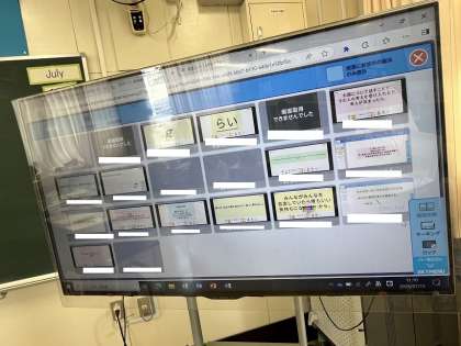 それぞれが書いた「最後にみんなに伝えたいこと」をモニターに写しています。