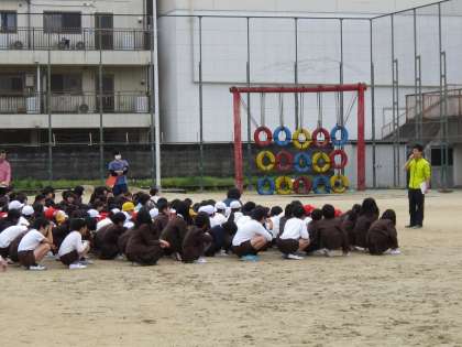 今年度、初めての避難訓練を実施しました。給食室からの出火を想定し、運動場へ避難しました。みんな素早く、ひなんできました。(4月12日)