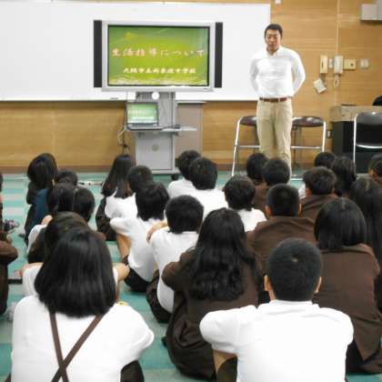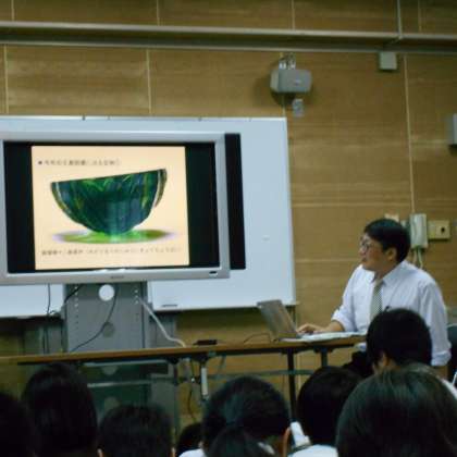 文化部担当の方にゲストティーチャーとして、来ていただき説明してい