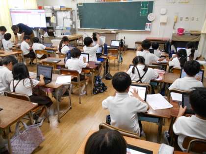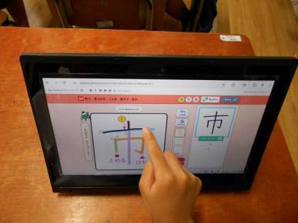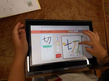 学習端末のデジタルドリルで漢字の練習をしています。この後はテストです。
