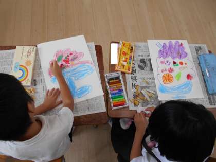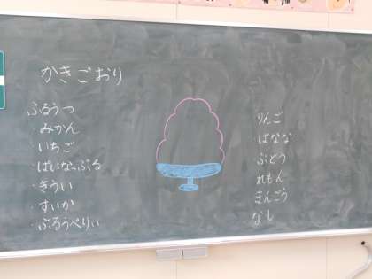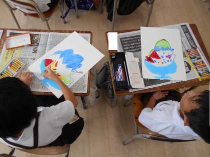 「かき氷」の絵をかいていました。色や材料など個々でちがっておもしろいですね。