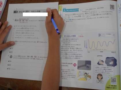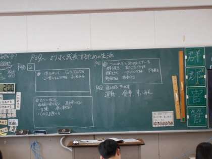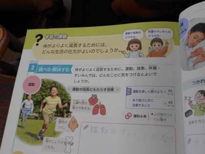 「よりよく成長するための生活」。成長するために必要な運動、食事、休養・すいみんなどのよりよい生活について学びました。