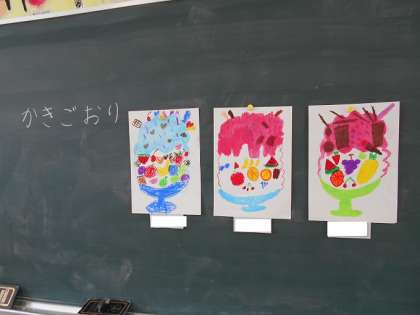 「かき氷」の絵をかいていました。終わった後は、ねんどをしたり、自習をしたりしています。
