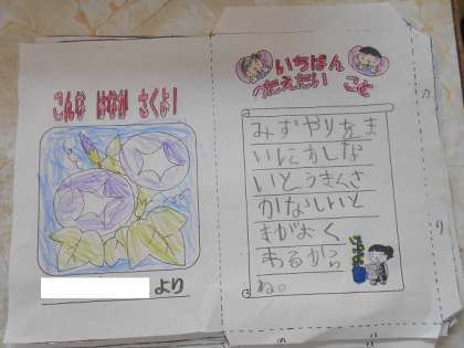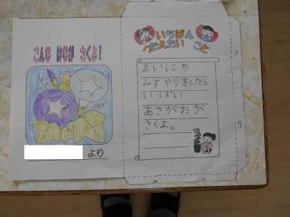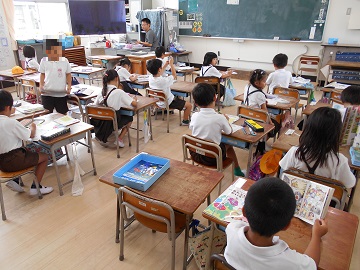 1年2組も先週に引き続き新1年生に渡す「あさがお」の種を入れるための封筒づくりをしました。