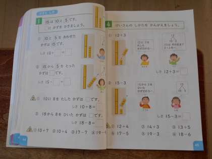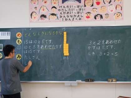 「どんなしきになるのかな」。足し算の計算の仕方を学習しています。