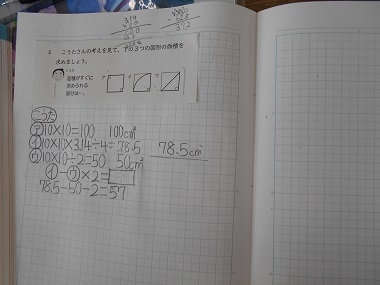 図形の面積を考える問題です。考えの筋道を立てながら解いていく必要があります。