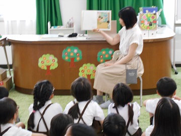 図書の時間の初めの読み聞かせです。かばのぬいぐるみの「ほげちゃん」は、小さなゆうちゃんといつも一緒なので汚れ放題。そのせいで家族がお出かけの日にも置いてけぼりになり、留守中に大あばれ。