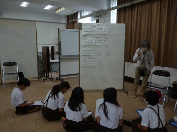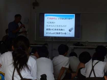 生き物さがしの後、各班ごとに発見した生き物や場所を発表し、まとめのお話をききました。