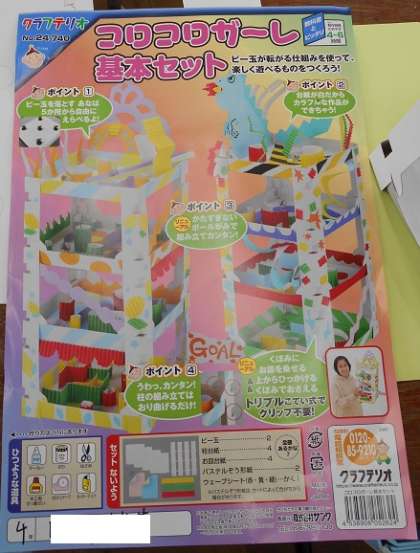 「コロコロガーレセット」。ビー玉を上の段から順番に落ちていくようなタワーをつくります。
