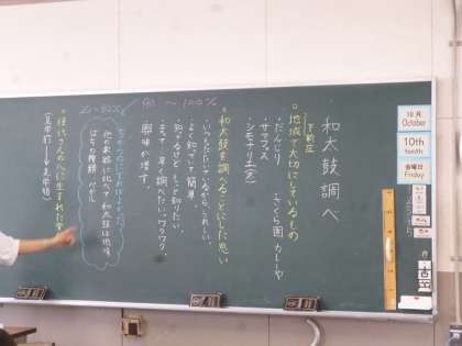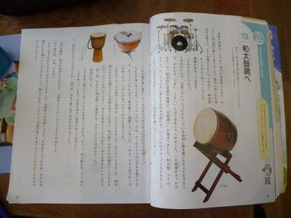 「和太鼓調べ」。他の楽器に比べて地味だと思っていた主人公が、太鼓づくりの現場を見に行って話を聞くうちに気持ちが変わってきました。
