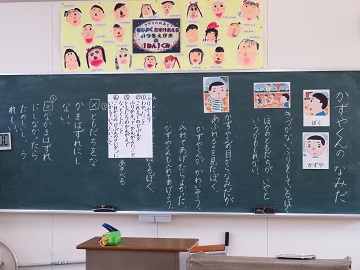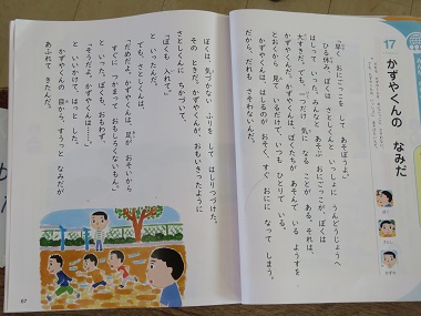 「かずやくんのなみだ」。おにごっこに入れなかったかずやくんの気持ちを考えました。