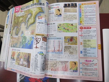 小テストに向けて、社会の副教材を使って、江戸時代の文化について確認しています。