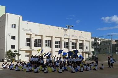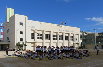 5・6時間目に5・6年生合同で演技の練習をしました。動きや立ち位置の確認をしました。