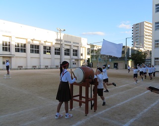 今日の放課後も応援団の練習をしました。ハチマキも初めて着けて練習しました。