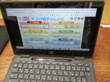 児童用端末でナビマの九九のところを学習しています。九九は覚えてきていますか?
