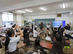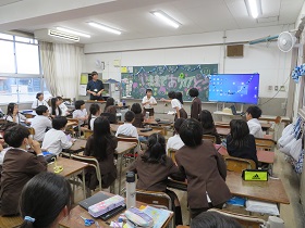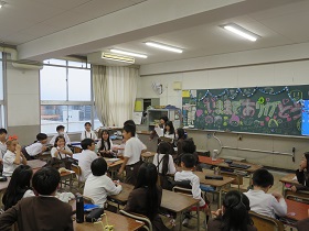 今日転出する児童に対する感謝の気持ちを込めて、ハロウインパーティでみんなでゲームをしたりして楽しく過ごしています。