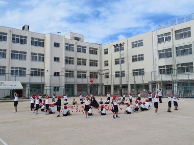 午前中に運動会の2学年合同練習を行いました。2時間目は1・2年生の合同練習です。体操の練習の後、玉入れの練習をしました。