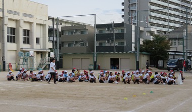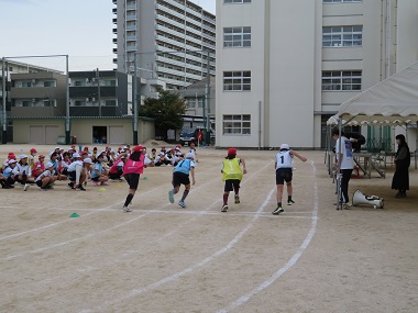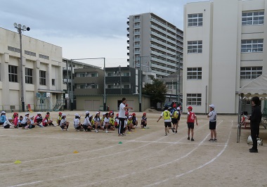1・2時間目に団体演技の合同練習をして、6時間目はリレーの練習をしました。