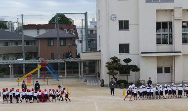 1時間目に運動会全体練習をしました。開会式、閉会式、大玉転がし、応援合戦などの練習をしました。あさって土曜日の運動会に向けて気持ちが高まってきますね。