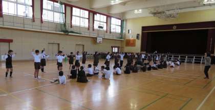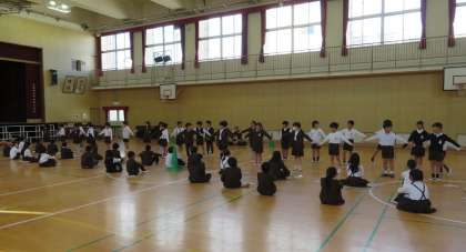 音楽発表会に向けて、2クラス合同で練習しています。振りをつけての合唱練習です。