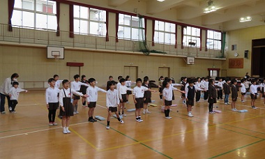 3時間目に講堂で練習しました。歌の練習の後、楽器ごとに分かれて合奏の練習もしました。