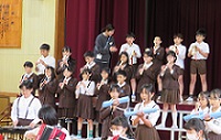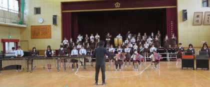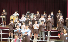 5時間目講堂で練習をしました。合唱の後、移動の動きの確認をして合奏練習です。