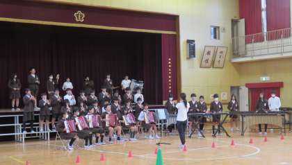 入場から合唱・合奏、退場まで練習しました。合唱の2部合唱・3部合唱や演奏もうまくなってきています。