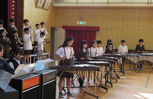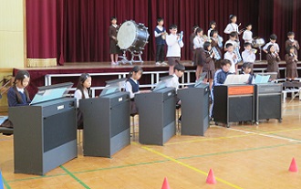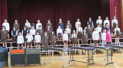 入場、合唱、ハンド・クラップ、合奏、退場の流れを確認しながら練習しました。練習することでよくなってきています。