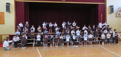 舞台と並行に並んで練習した後、舞台に並んで位置を決めて合奏の練習もしました。