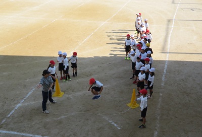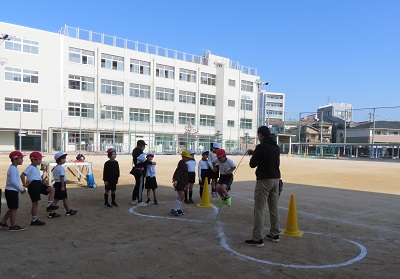 2時間目運動場で長なわをしました。練習して、タイミングよく跳べるようになってきました。