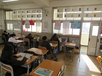 今日は2時間目に国語、3時間目に社会をしました。明日は、2時間目から算数、理科、英語です。