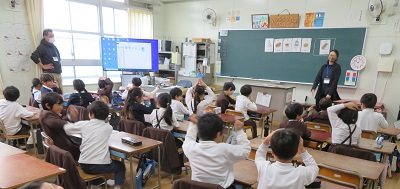 C-NETの先生が、がいこくごの授業をしてくださいました。(2年2組はすでにやっています)。食べ物の名前を英語で言われて、まちがっているものを当てるクイズです。楽しんで学習していました。