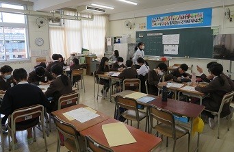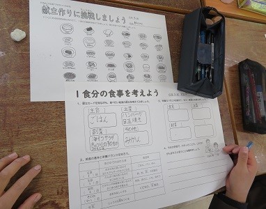 栄養教諭の先生に食育の授業をしていただきました。「一食分の食事を考えよう」のテーマで主食とおかず3品を考えて発表しました。