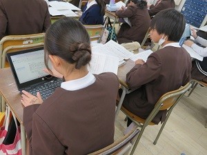 卒業文集用の自分の原稿を推敲し、できた人から児童端末で入力しています。