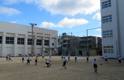 2時間目運動場で、なわとびやボール運動をしています。