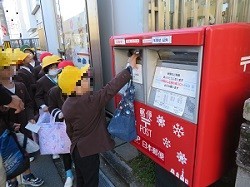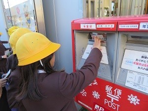 2時間目に2年生全員で東淀川郵便局に行って郵便ポストに自分の書いた年賀状を投函しました。お正月にはそれぞれのあて先に無事届くことだと思います。