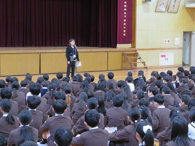 生活指導担当の先生からは、「47」日と学校に登校する日が1番短い3学期、小さくてもいいので具体的な目標をもって毎日を大切に過ごしてほしいとお話がありました。