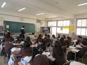 「弱いロボット」。教科書に出てくる「む~」というロボットの実際の動きをモニターで見ています。ロボットはAIの利用によって飛躍的に進化すると言われていますね。