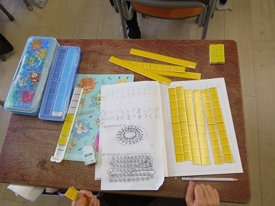 「くふうしてかぞえよう」。カードを使って数えるくふうをしています。