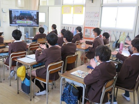 「地域のみなさんに感謝する集会」に向けて、動画を見ながら歌の練習をしています。
