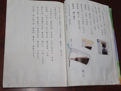 「あなのやくわり」。しょうゆさしのあなのやくわりのところを朗読しています。