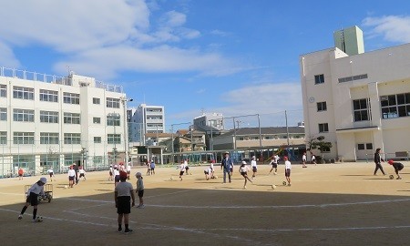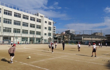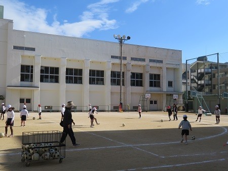 運動場でサッカーです。今日は一段と寒く感じます。風がないので助かりますが。