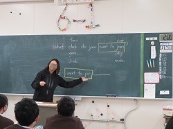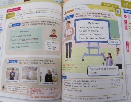 C-NETの先生との授業です。My Dreamで中学校に進学してやりたいことを英語で表現します。