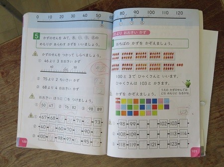 「かずをかぞえましょう」。100前後の数をかぞえます。