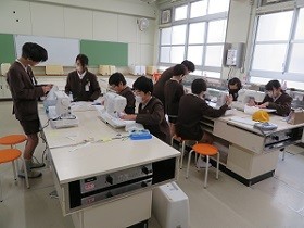 ミシンで布を縫っています。ミシンの扱いには慣れてきたようです。