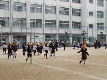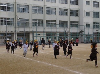 6年生がいなかったので、2年生と3年生で走りました。人数が少なくて少しさびしかったけど一生懸命走りました。体育の授業で運動場に出てきた4年生からの声援もありました。くもが出てきて寒くなってきました。
