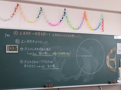 正八角形をコンパスを使ったりして、学習しています。