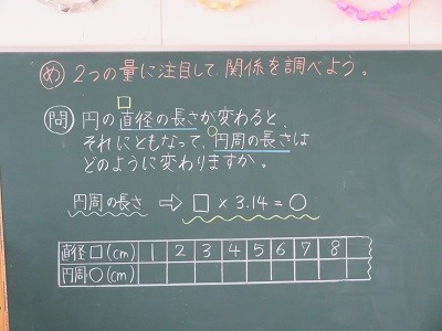 円の直径と円周の長さの関係について調べています。