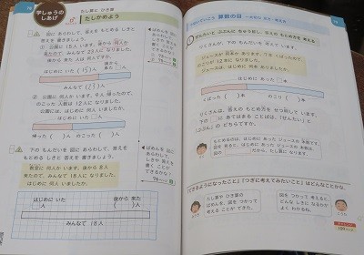 「たし算とひき算」のたしかめの問題を図を使って解いています。